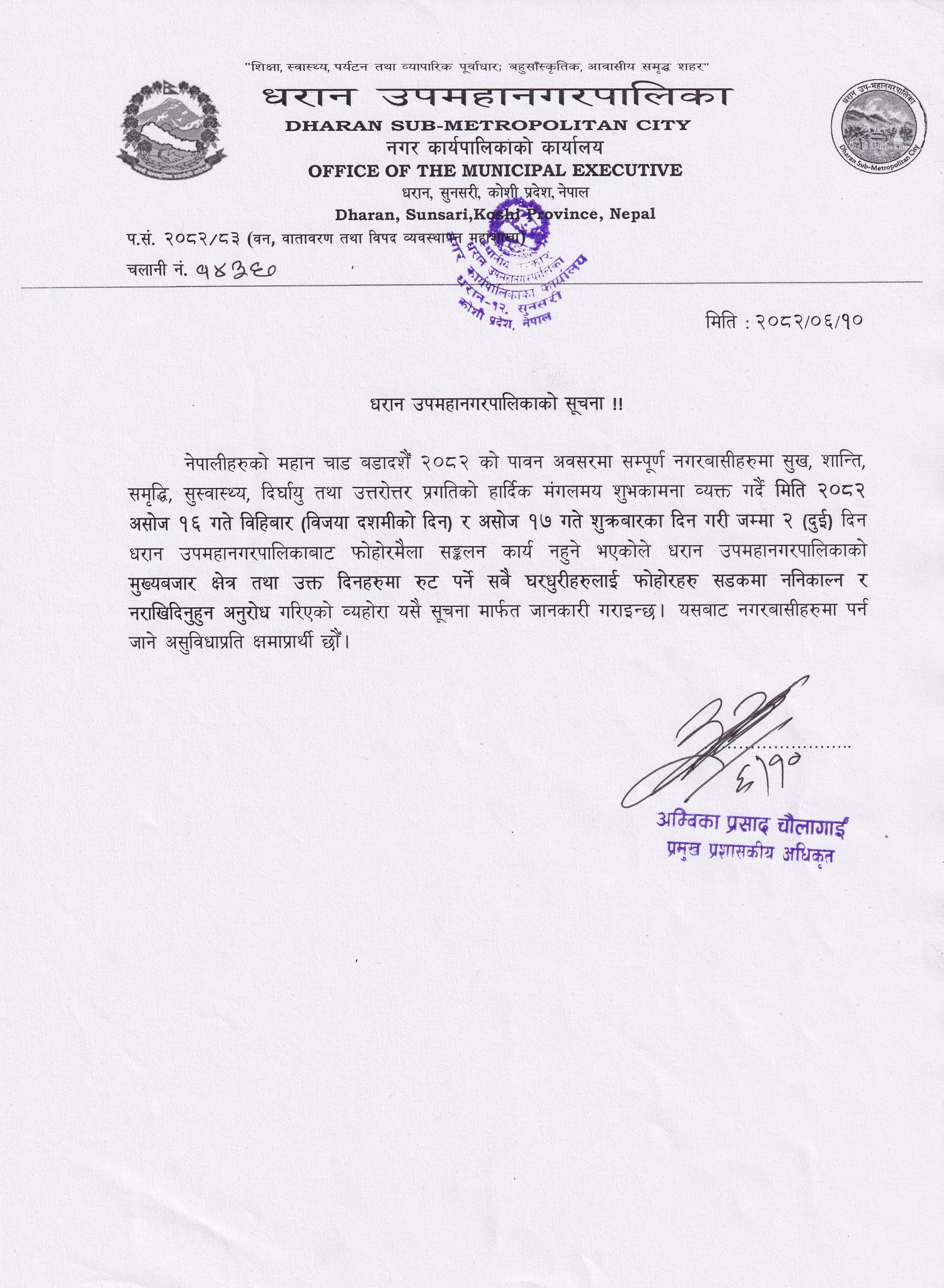 » फोहोरमैला संकलन कार्य स्थगन हुने सम्बन्धि सूचना